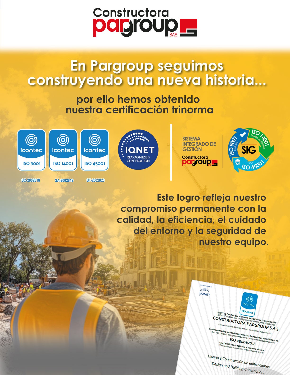 Prestar servicios de construcción para edificaciones de uso institucional y comercial; innovadores, sostenibles, que promuevan el bienestar y la armonía entre las personas y el medio ambiente